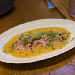 Found this place while exploring the area, the rating seem good and upon my arrival I had no reservations but they managed to find us a table , the ambiance was nice and the server were helpful and nice the food was good but short of great, considering that laguna beach has mostly touristy restaurants that are high in price but low in quality made this place was definitely better than most of the surrounding restaurants. The Beef cheeks were smother in this type of mola sauce that completely covered the beef cheeks, and grilled octopus had to many little unknown purées , I suggest some simple adjustments by the chef would make for a better plates What I enjoyed the most was the bone marrow and banana tarts